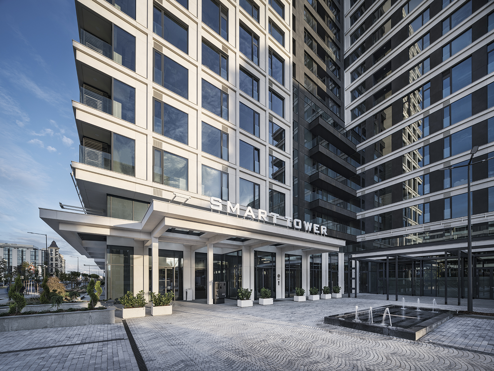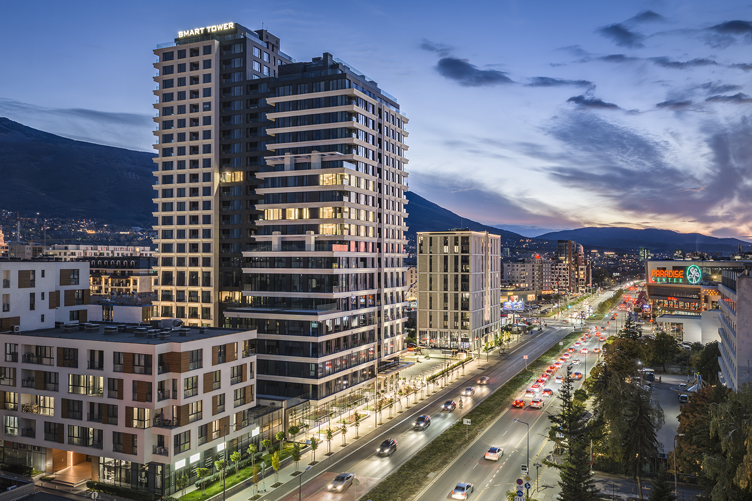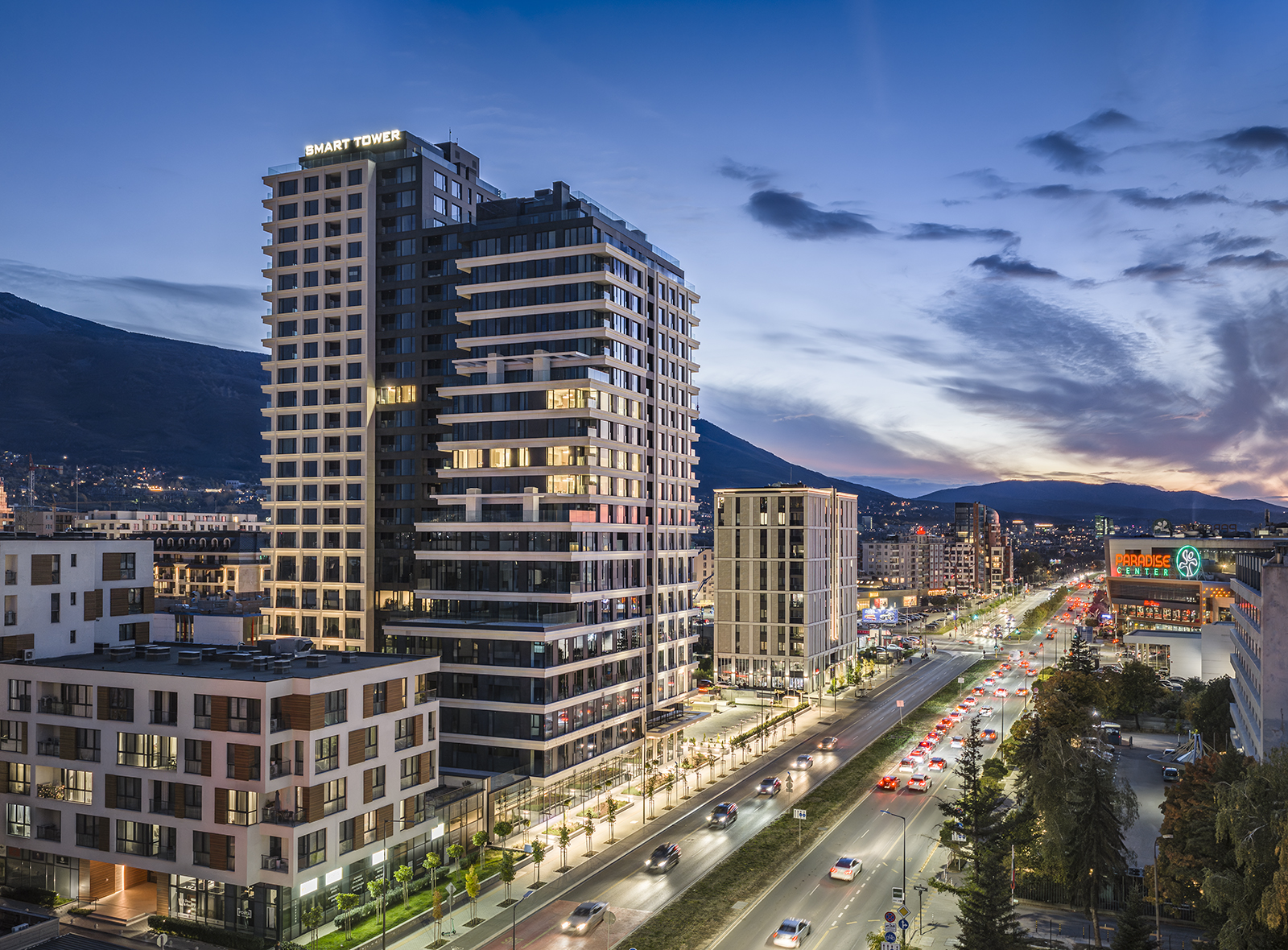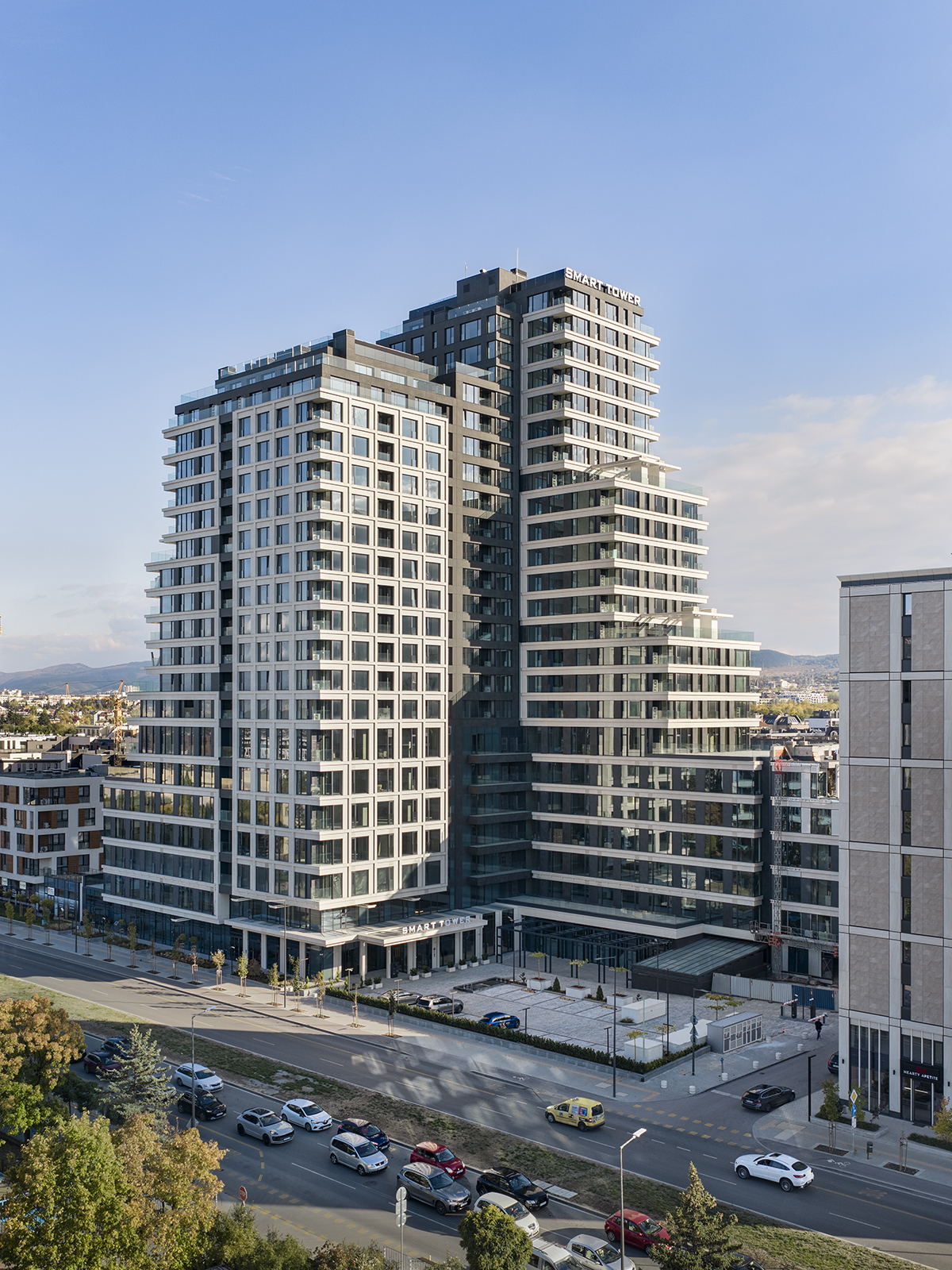 75м височина, РЗП: 41 126м2, 160 апартамента, офисни етажи, 502 паркоместа